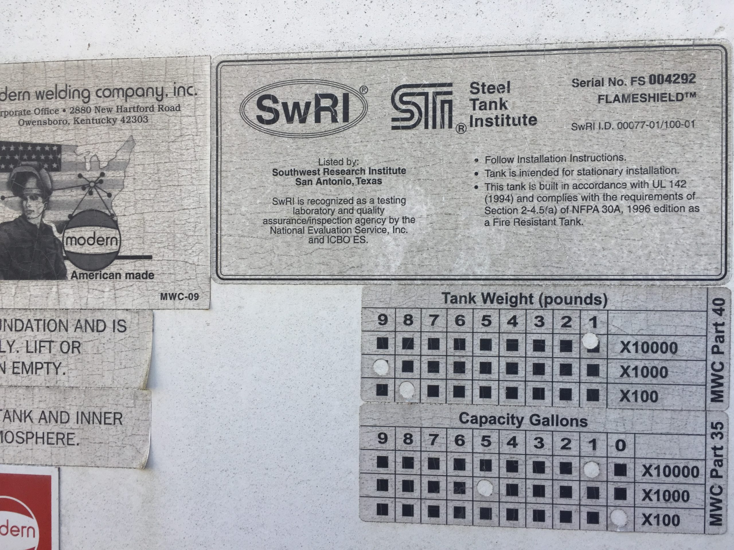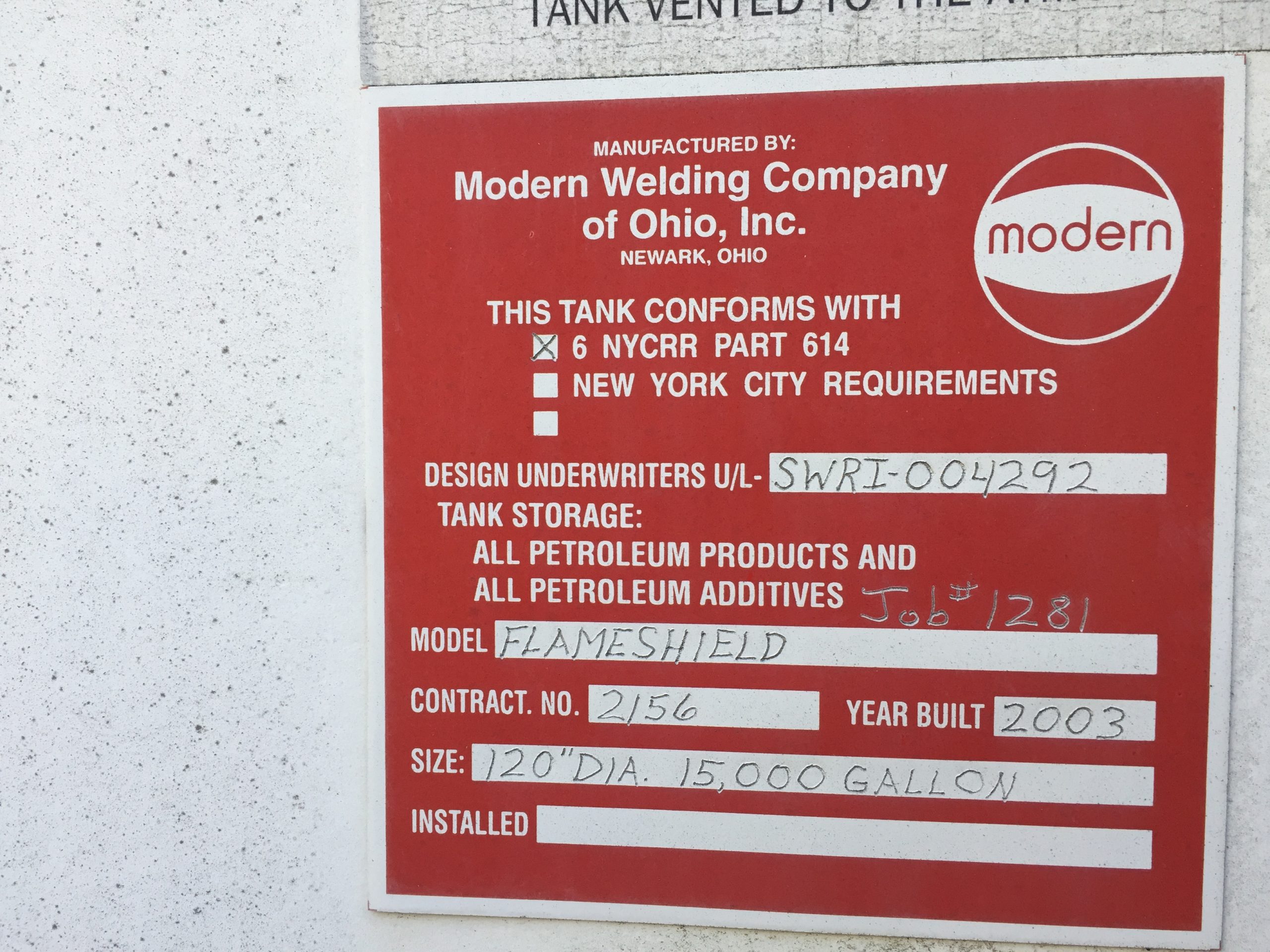 - Manufacturer of Tank: Modern Welding